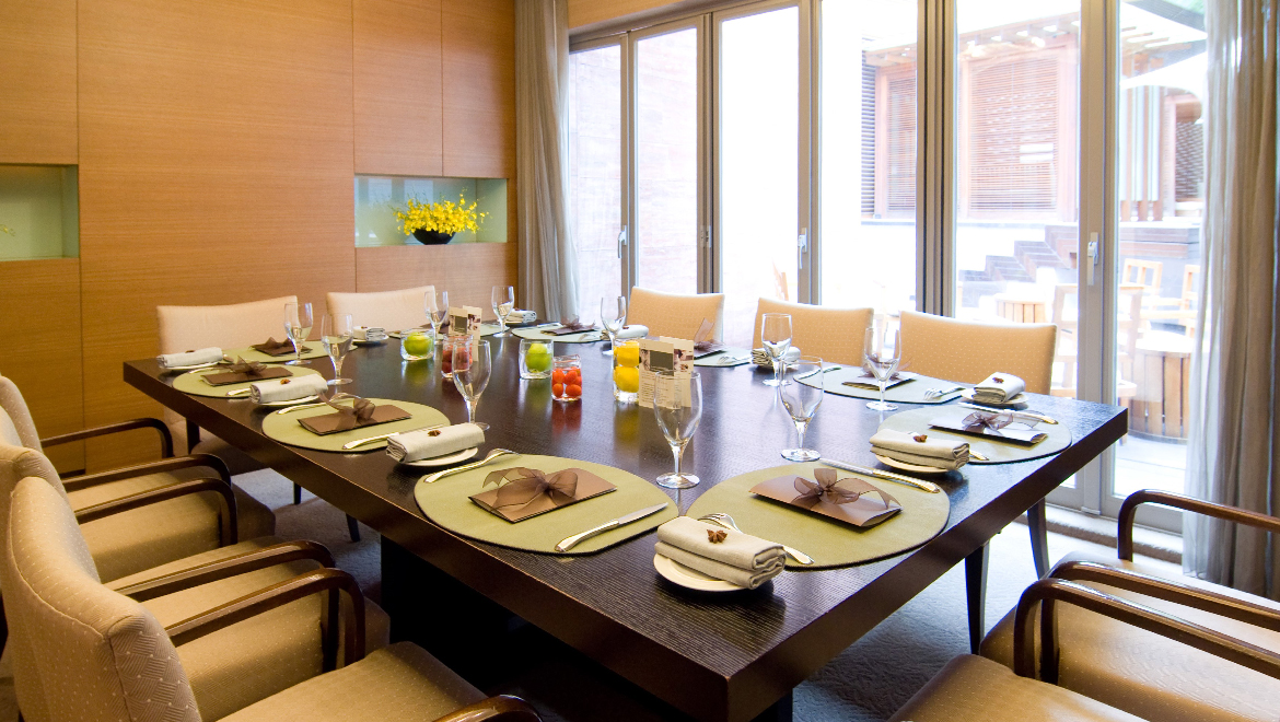 約7坪のプライベート空間。10名収容可能。入口の庭園に面した大きな窓があり、窓を開けて屋外の風景を楽しむことができます